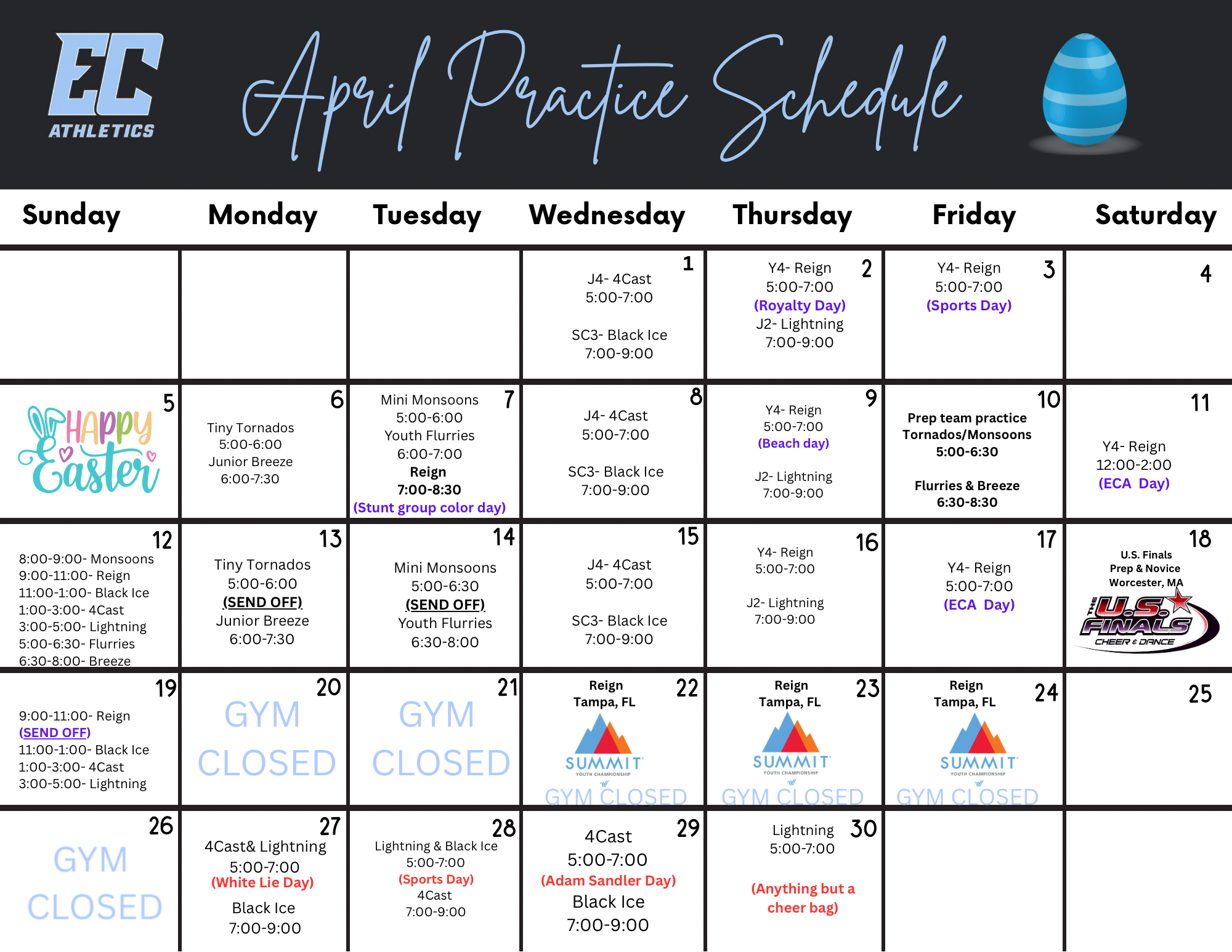 Spring Practice Schedule